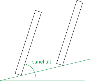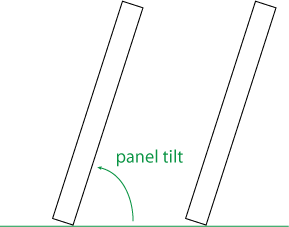 The tilt of the panels in degrees, measured from horizontal: Use tilt = zero for horizontal panels and tilt = 90 for vertical panels. Please note that panel tilt is measured from true horizontal, relative to flat ground and not relative to the tilt of the surface (such as a roof): |